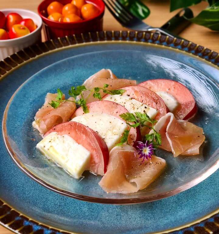 蜂蜜、ビネガー、オリーブオイルのソースで